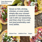 Our blackening seasoning is the perfect blend of Cajun herbs and spices, great on fish, shrimp, chicken, or even steak. Dip your chosen protein in melted butter, rub it with our seasoning, and then char it in a red-hot (and preferably cast iron) skillet.