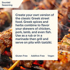 Use this blend to create your own version of the classic Greek street food. Greek spices and herbs combine to flavor your skewers of chicken, pork, lamb, and even fish. Use as a rub or in a marinade, then grill and serve on pita with Tzatziki.