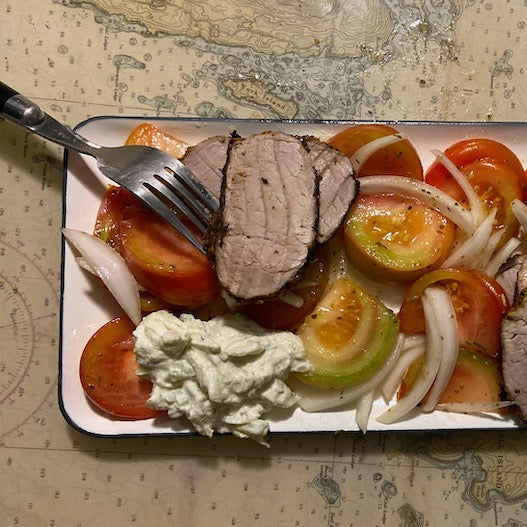 - Herb + Fenugreek Pork Tenderloin with Tomato and Onion Salad