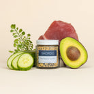 Ingredients: Black Sesame Seed, Sea Salt, White Sesame Seed, Black Pepper, Ginger, Lemon Zest, Wasabi (Mustard, Horseradish), Tamari Powder (Soybeans, Sugar), Cayenne Pepper