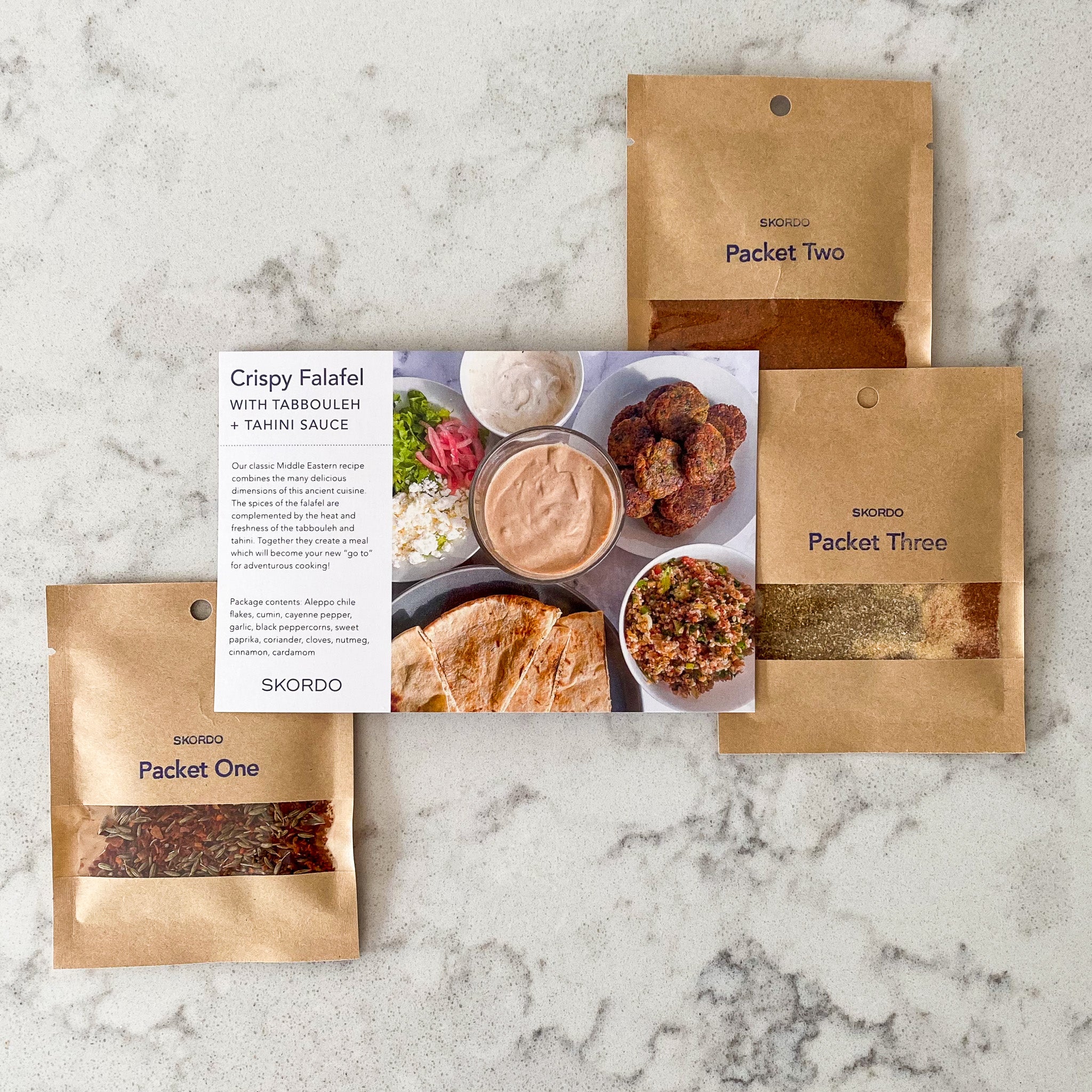Each kit comes complete with pre-portioned ingredient packets and the full recipe including required ingredients and detailed directions. Tip: All kraft ingredient packets are 100% compostable and biodegradable.