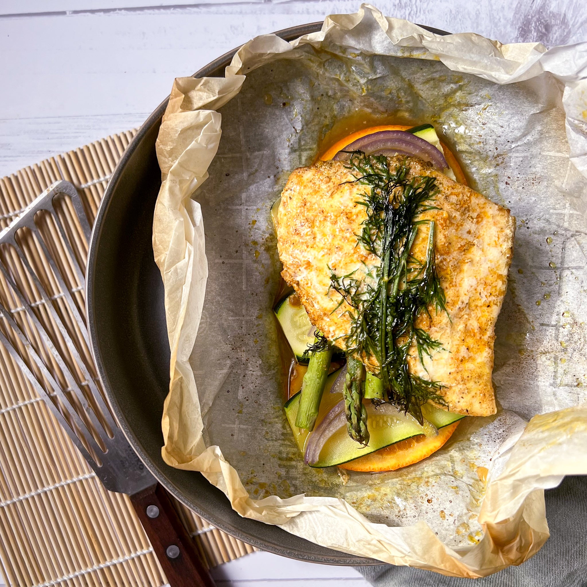 Fish en Papillote, or fish in parchment, is a fun meal the entire family can enjoy, where each filet gets its own packet that can be customized with a choice of vegetables. Perfect for swordfish or any other firm fish filet, it can be cooked in the oven, on the grill, or in a smoker. The spice marinade delivers bright flavors and a touch of heat. Paired with fluffy rice and a sumac-seasoned salad, you’ll be making this one again soon.