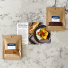 Each kit comes complete with pre-portioned ingredient packets and the full recipe including required ingredients and detailed directions. Tip: All kraft ingredient packets are 100% compostable and biodegradable!