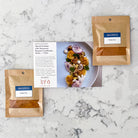 Each kit comes complete with pre-portioned ingredient packets and the full recipe including required ingredients and detailed directions. Tip: All kraft ingredient packets are 100% compostable and biodegradable!