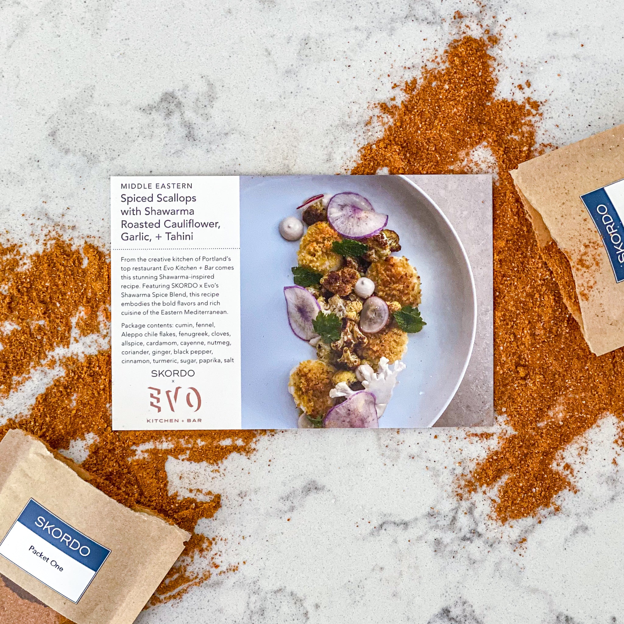 From the creative kitchen of Portland’s top restaurant Evo Kitchen + Bar comes this stunning Shawarma-inspired recipe. Featuring SKORDO x Evo’s Shawarma Spice Blend, this recipe embodies the bold flavors and rich cuisine of the Eastern Mediterranean.