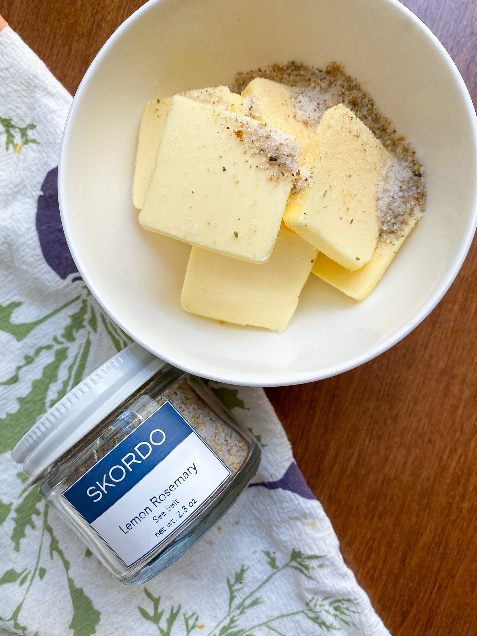 Our Lemon Rosemary Sea Salt is infused with lemon peel, rosemary, and garlic. It provides a remarkable burst of flavor for roasted chicken, fish, or vegetables. We've also found it is delicious to top fresh rolls or scones with this mixture. It can be used for cooking or as a finishing salt.