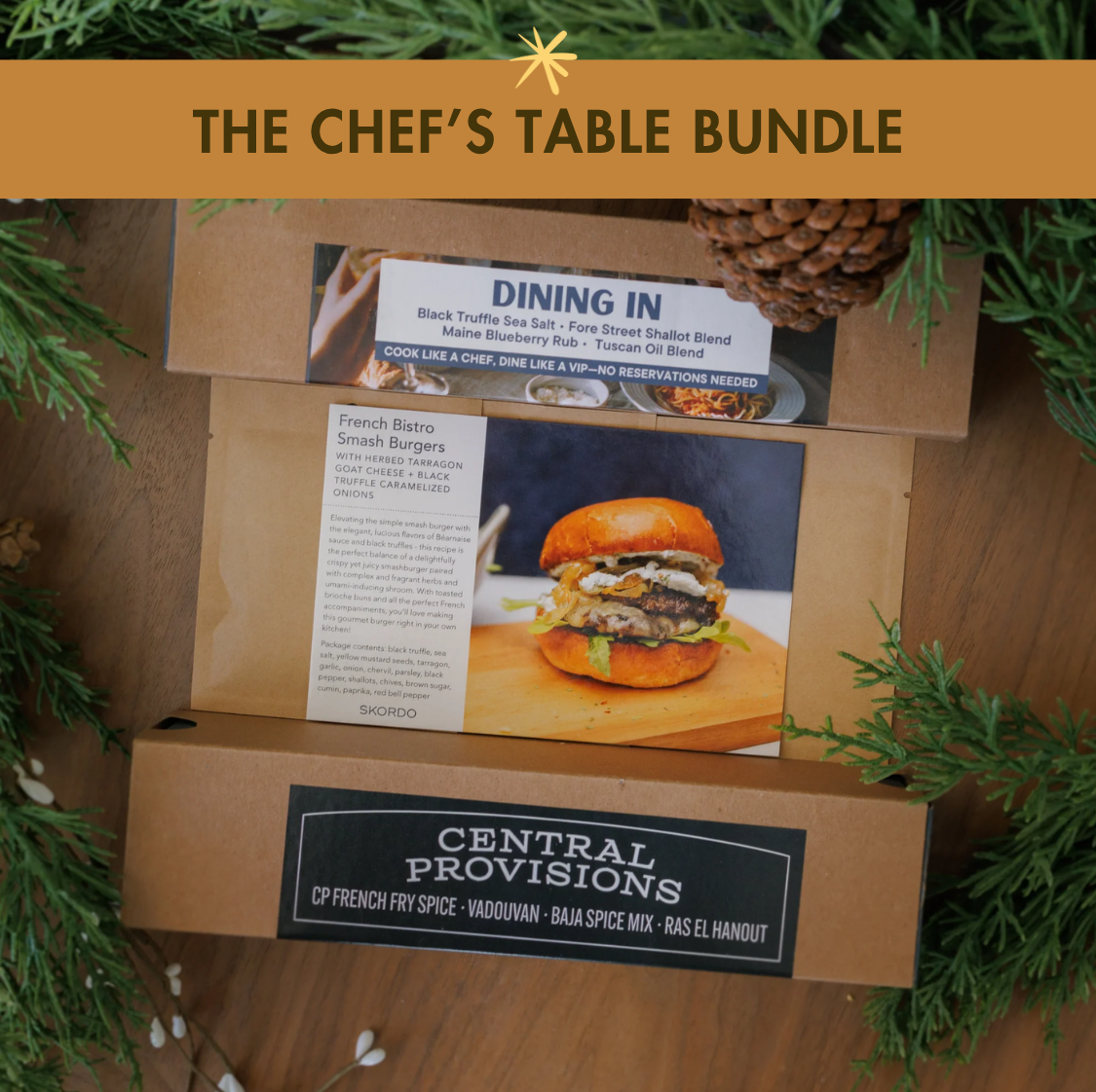 Indulge in restaurant-worthy flavor with The Chef’s Table Bundle — a thoughtful gift for food lovers who crave elevated meals at home. From the bold, chef-crafted blends of our Central Provisions x SKORDO Set to the cozy favorites in Dining In and the irresistible French Bistro Smash Burger Recipe Kit, this trio transforms any kitchen into a culinary destination.