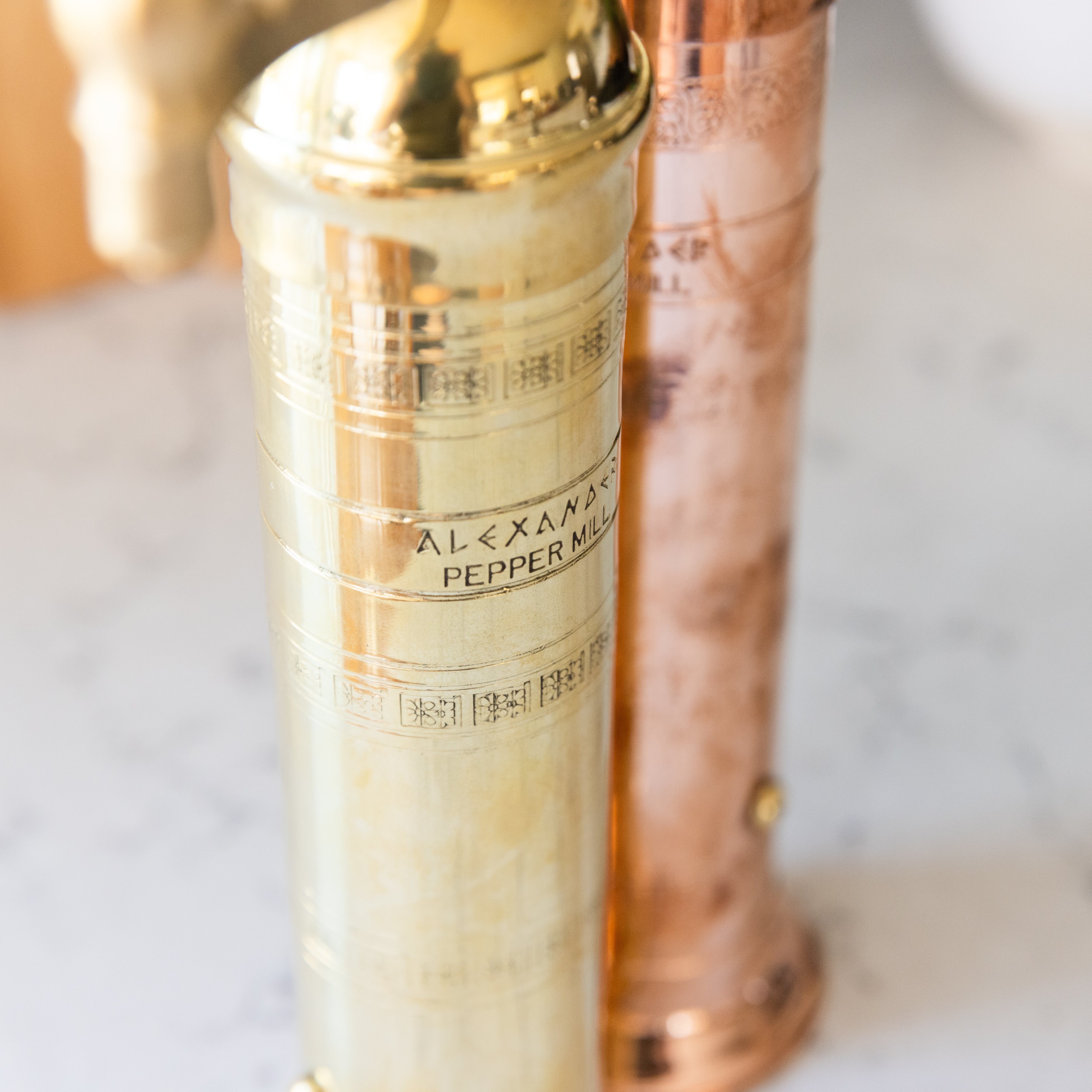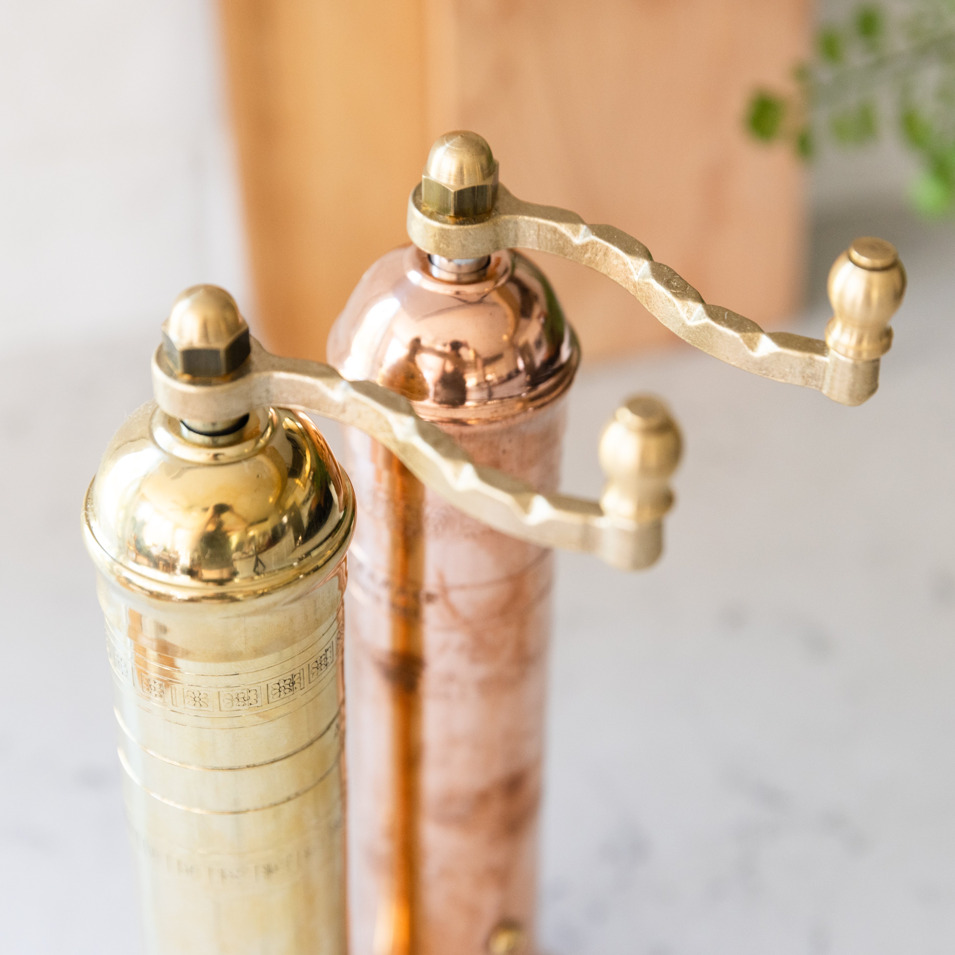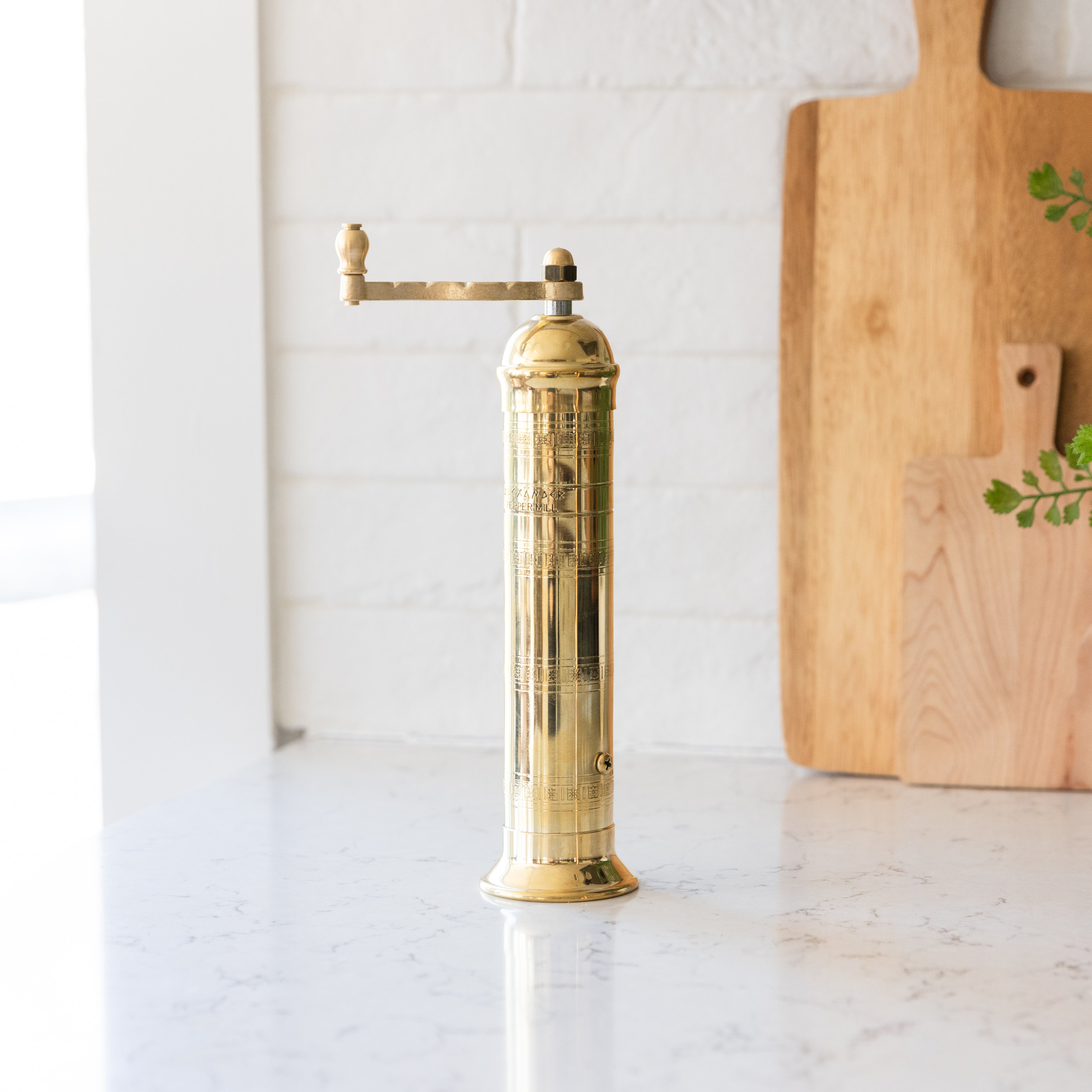 Experience an elevated daily grind with the Atlas Brass Pepper Mill. Handcrafted with precision in Greece, each mill utilizes a brass mechanism and flanged base, providing a seamless addition to your kitchen or table. Equipped with a powerful crank, this mill is able to handle a variety of spices allowing you to infuse your recipes with freshly ground aromas. The 3-part grinding mechanism first guides the spice down into the mechanism, after which it is coarsely ground and finally completely finely ground.