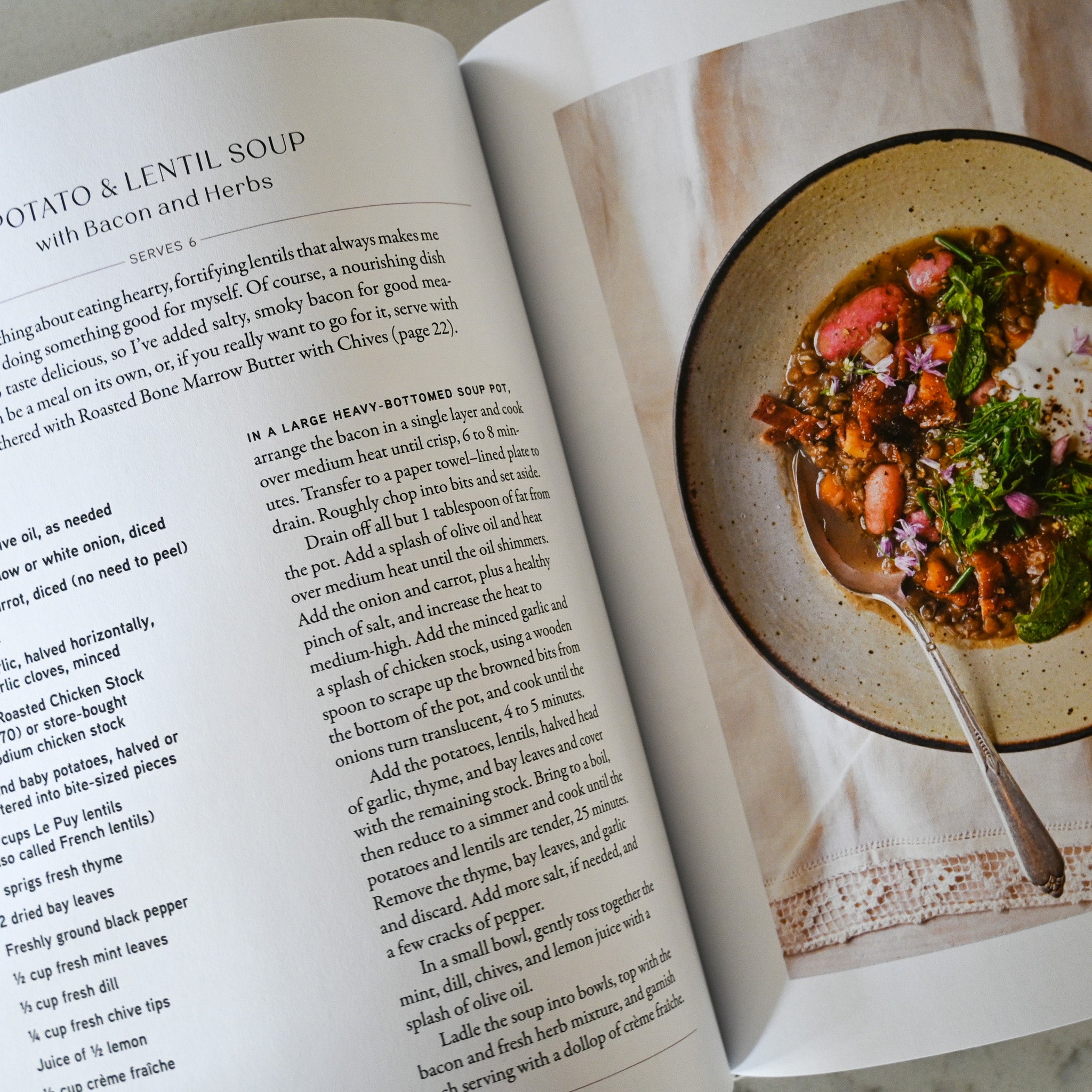With dishes pulled from French's family recipe box and the menu at The Lost Kitchen, ranging from irresistible nibbles like Pecorino Puffs and Gram's Clam Dip; to luscious soups like Golden Tomato & Peach and Potato & Lentil with Bacon and Herbs; to heaping platters of family-style salads and sides like Peach & Blackberry Salad and Green Beans with Sage, Garlic, and Breadcrumbs; to show-stopping main courses like Pickle-Brined Roast Chicken and Wednesday Night Fish Fry; to French's favorite all-purpose kitchen staples like Kitchen Sink Pesto and Floral Vinegar, this cookbook has all the tools you need for assembling a seamlessly special meal.