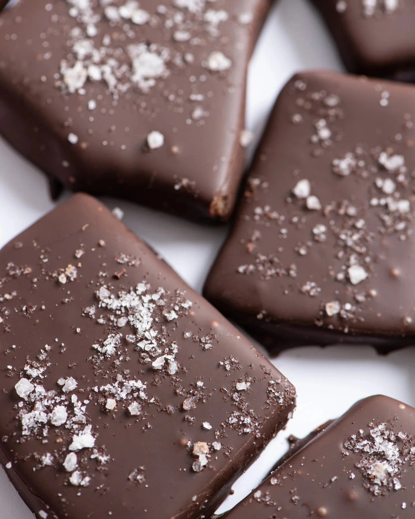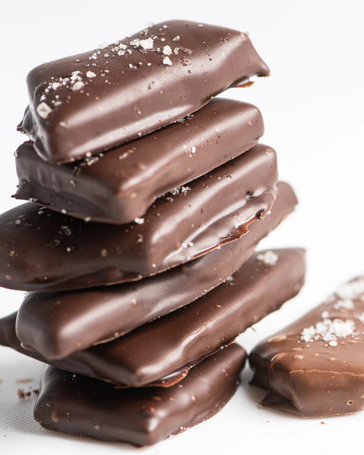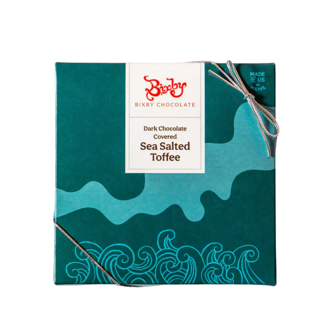 Bixby's Buttery Toffee enrobed in dark chocolate and sprinkled with Maine sea salt.