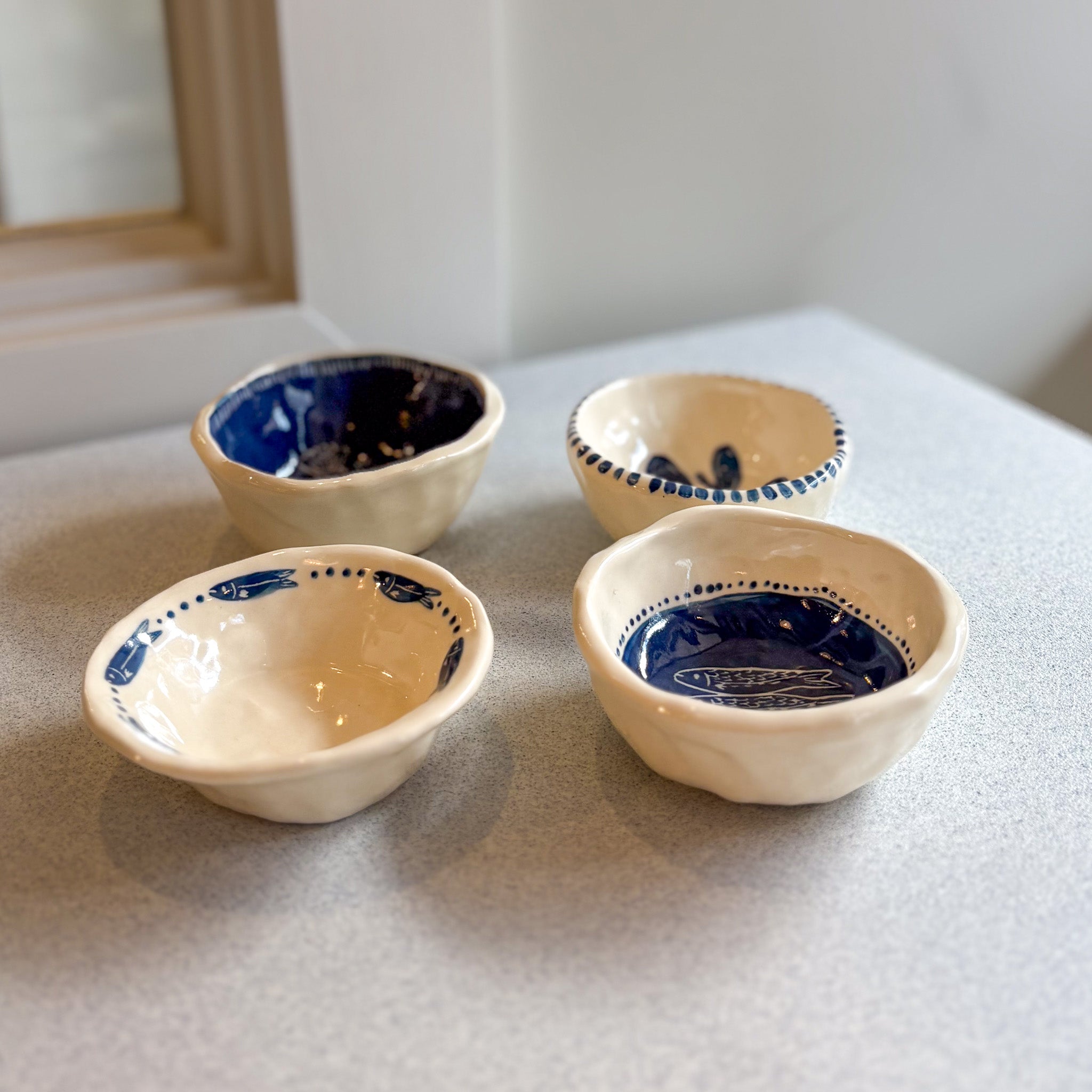 Each dish is individually painted and formed by hand in Maine by Gabrielle Jolie Stratmann of Bug-Eyed Co.