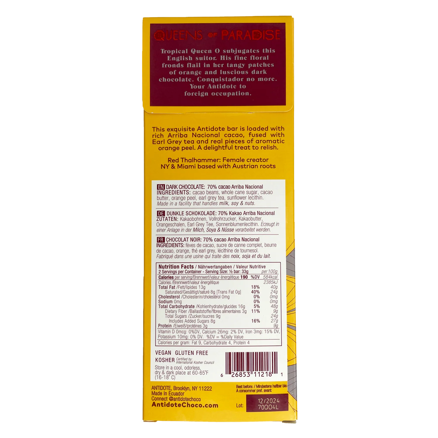 Orange + Earl Grey Antidote is more than chocolate; it’s an experience, a journey to elegance and sophistication. Let it indulge your senses and enrich your soul.