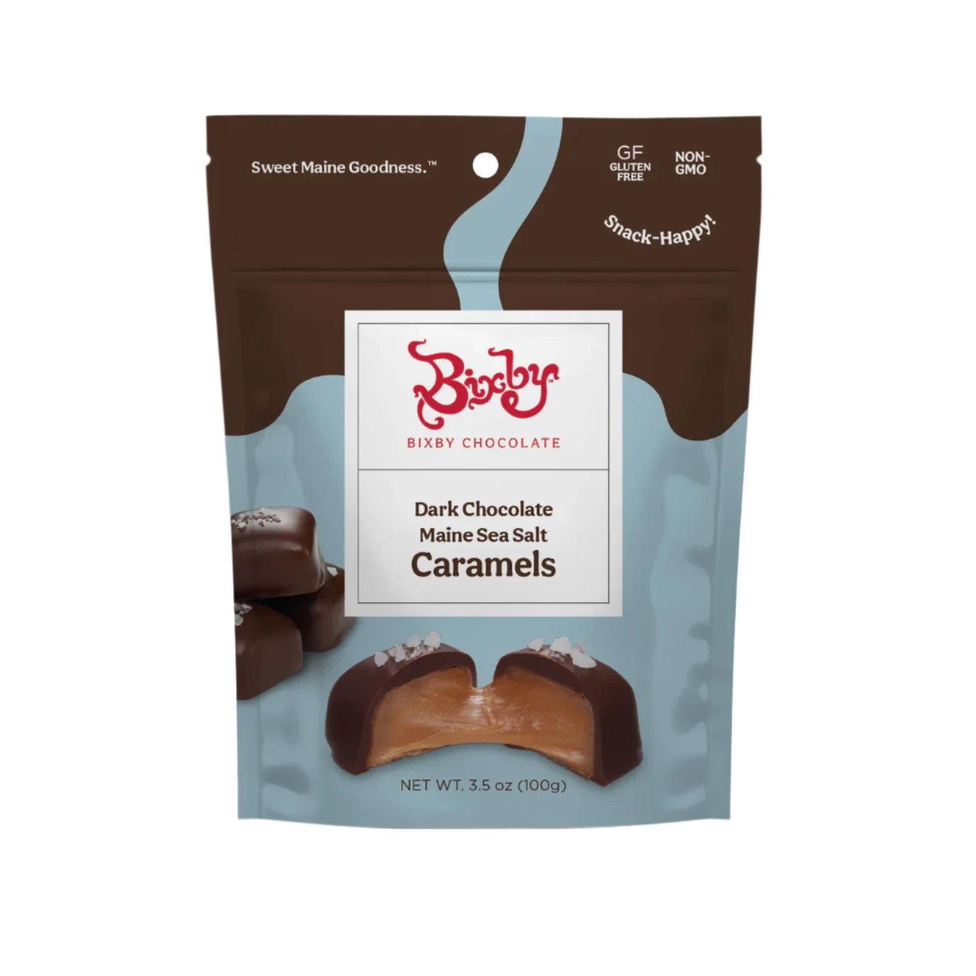 Made on the coast of Maine in Rockland, Bixby & Co. Sea-Salted Caramels are little chunks of premium caramel dipped in deluxe dark chocolate sprinkled with crystal of sea salt from the cold Maine ocean. Sure, technically they are candy, but they’re made to be a guiltless way for you to truly enjoy some sweet Maine goodness. Non gmo. Kosher. Gluten Free. Net wt: 3.5oz. Great snacking gift.
