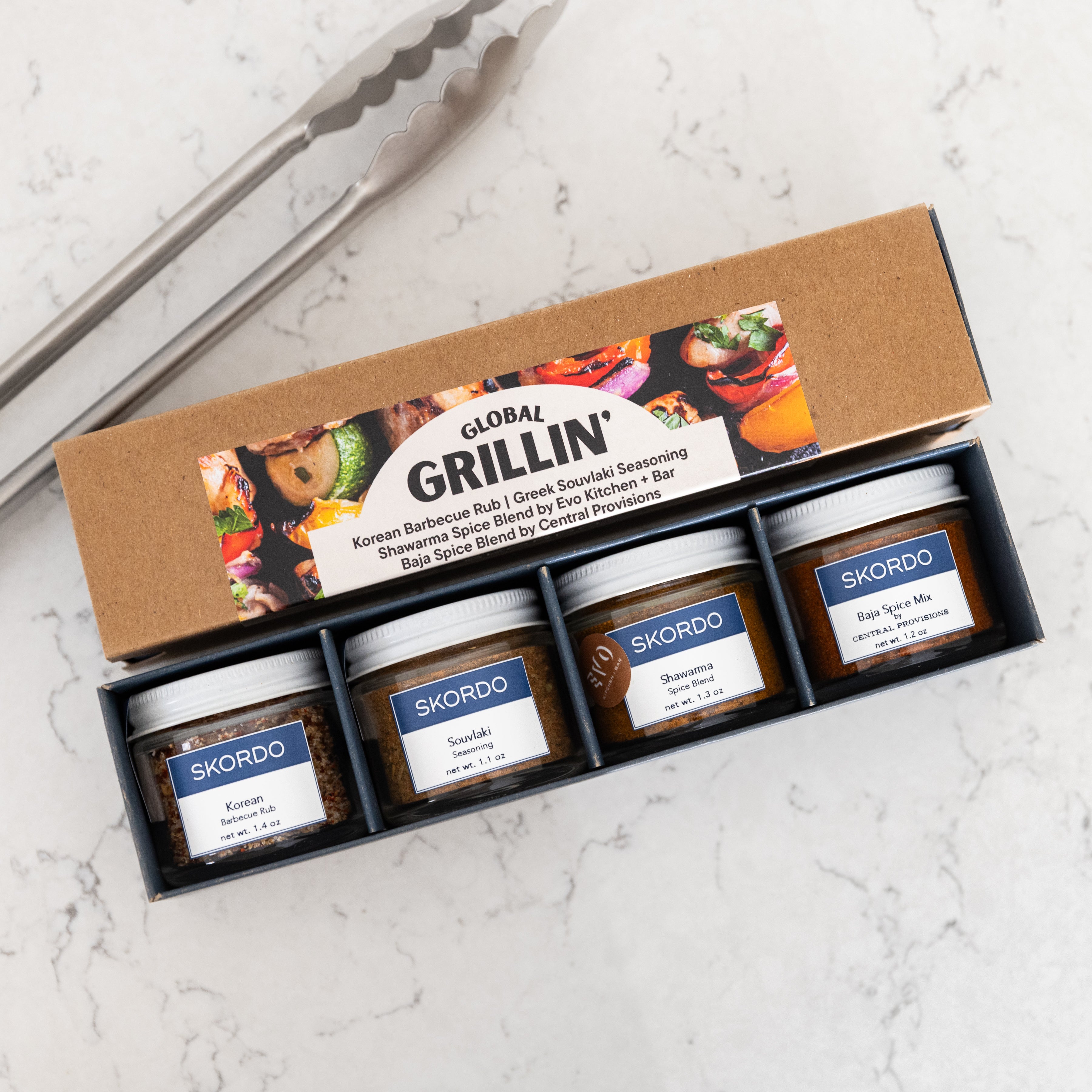Explore tasty barbecue from around the world through this curated spice set. A delightful gift for the grill-master or international food-lover.