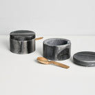 Gray Marble Lidded Cellar & Wood Spoon