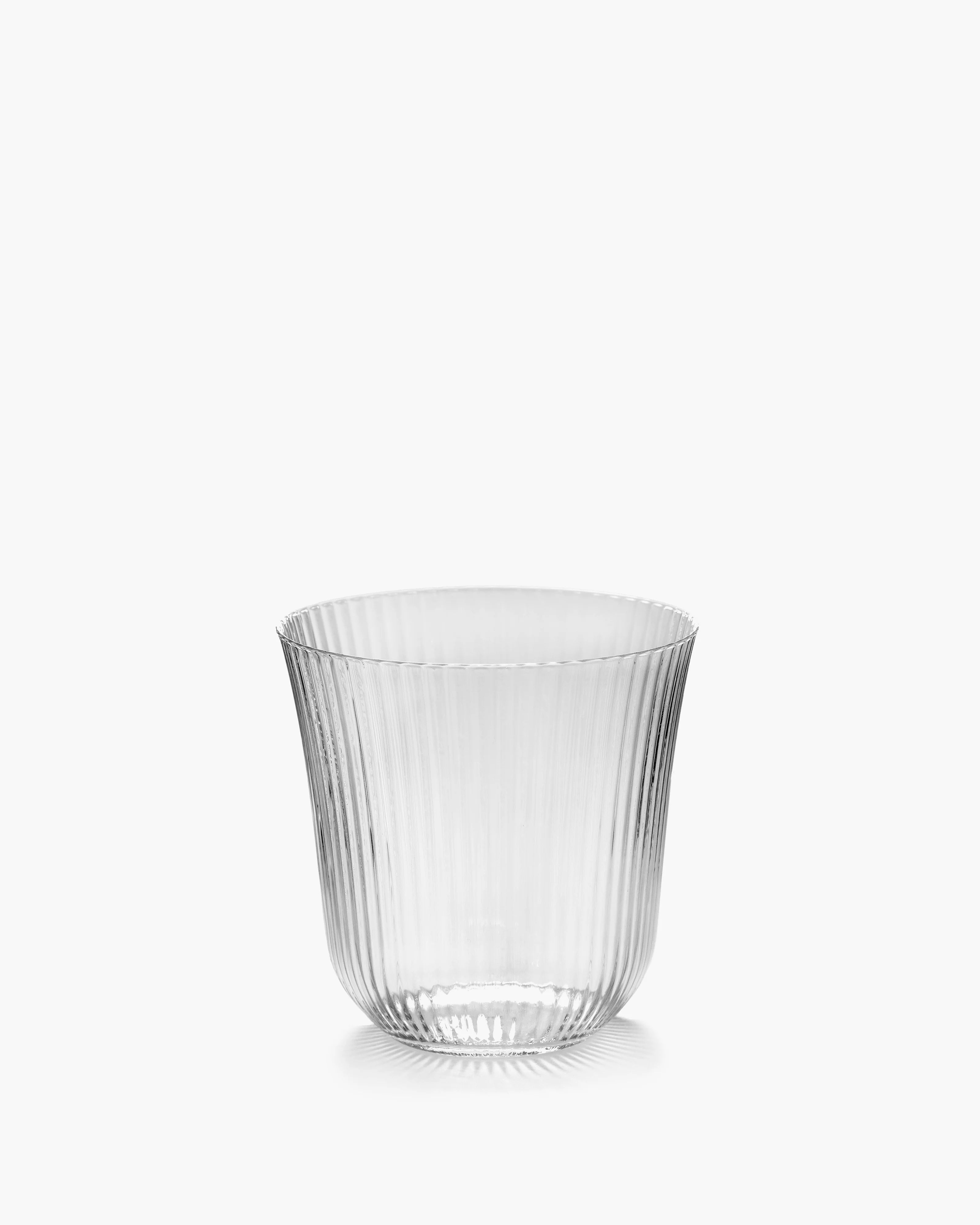 The Inku Ribbed Glass Tumbler by Serax, designed by Sergio Herman, embodies Japanese simplicity with a modern twist. Its delicate ribbed texture and refined silhouette make it ideal for serving water, juice, or cocktails, adding a touch of sophistication to any setting.
