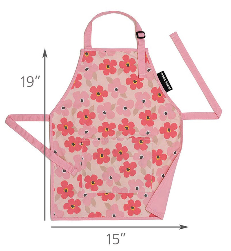 Made from a double-layered cotton broadcloth for durability. Suitable for cooking, baking, gardening, or art projects at home and school. Machine washable (cold water) and safe for tumble dry. Each apron includes an adjustable neck strap for fit.