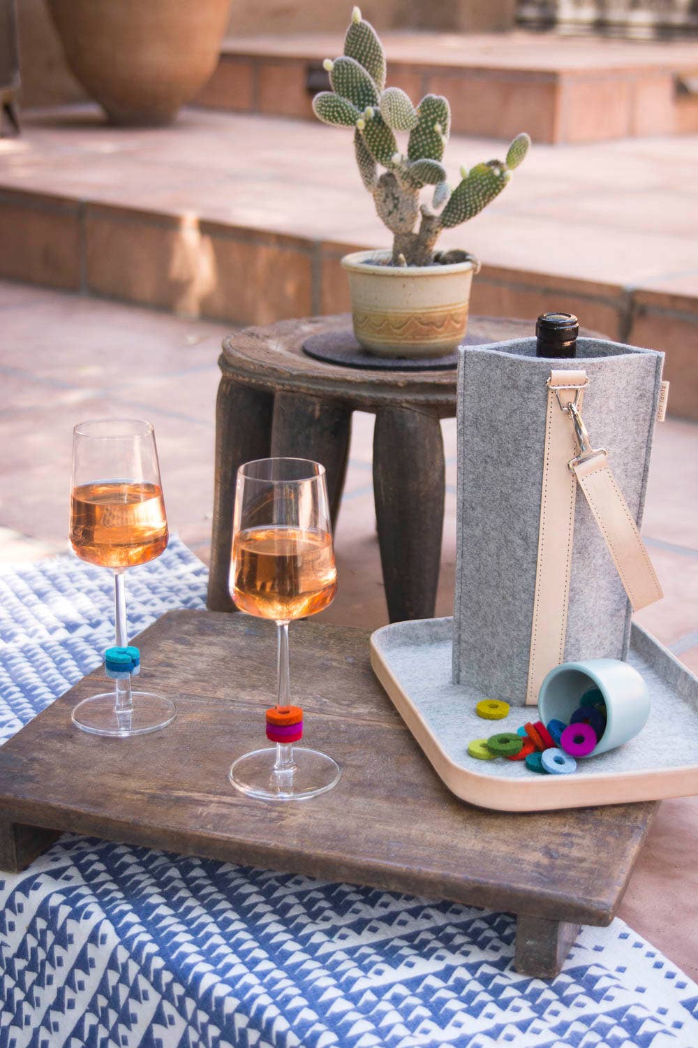 Say goodbye to Unknown Glass Syndrome. These felt wine markers from Graf Lantz help guests keep track of their drinks in style—no clinking charms or sticky labels required. Made from ultra-light, sustainable Merino wool felt, each Wine-O gently hugs your glass stem with a soft pop of color.