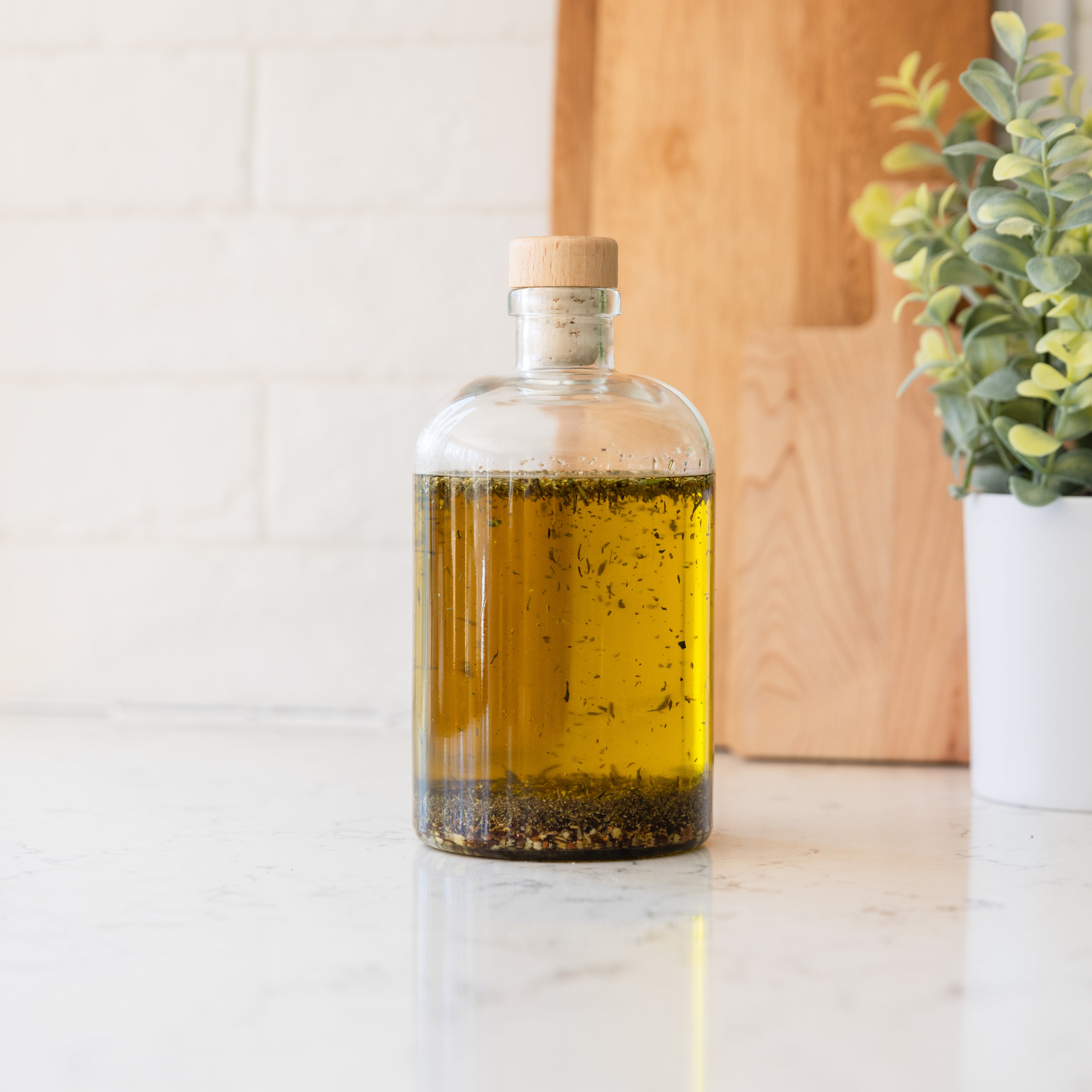 This recycled glass bottle is perfect for everything from cooking oils and vinegars to cocktail infusions and extracts. Make your kitchen counter (or even living room or bathroom counter) pop with stunningly simple glass bottles filled with your favorite flavors. Comes with a cork lid to keep your ingredients air-tight and fresh.