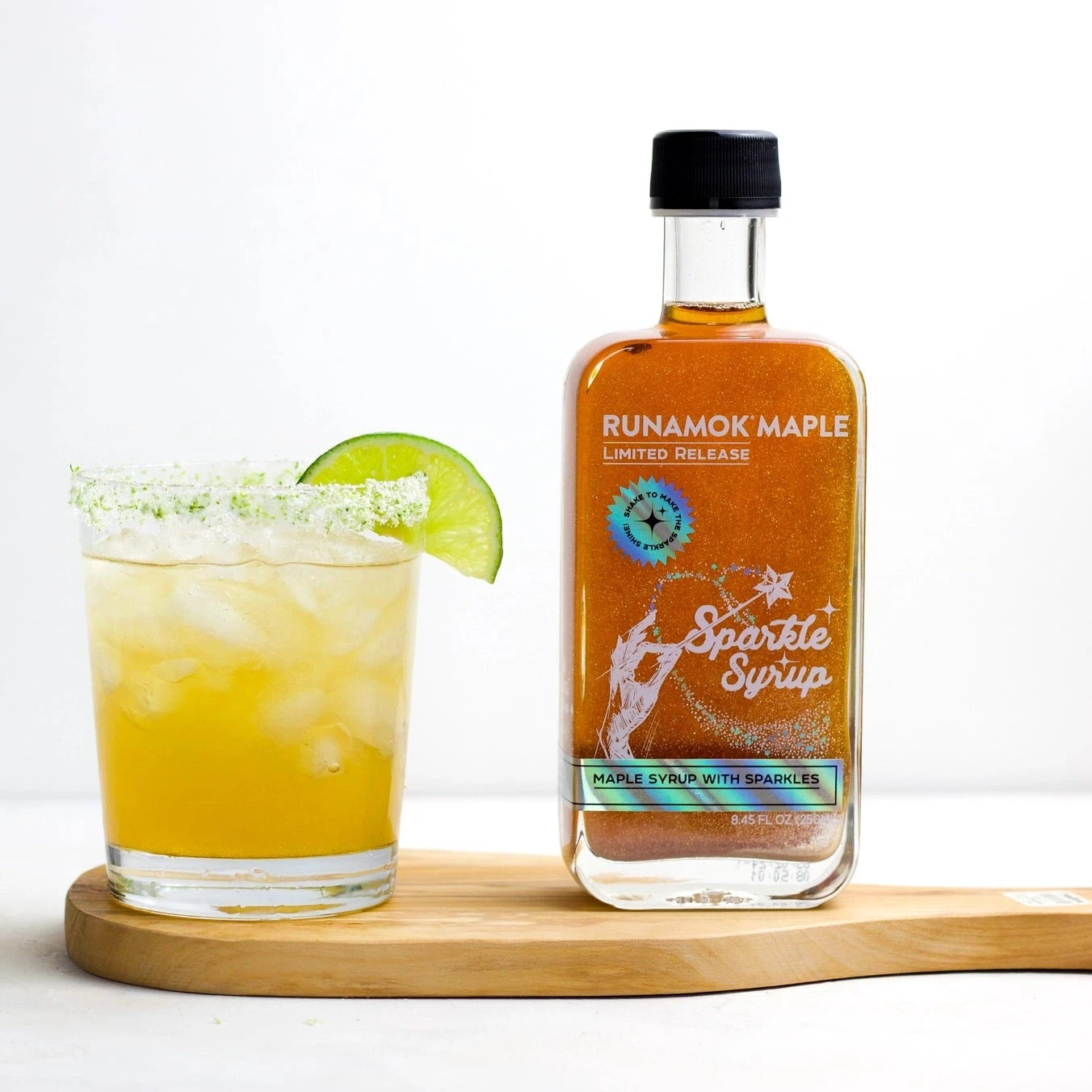Sparkle Syrup is our grade A Vermont maple syrup infused with pearlescent mica sparkle. The sparkles are a superfine mineral powder that impart no texture or flavor – just our pure amber rich maple with an added bit of fun!