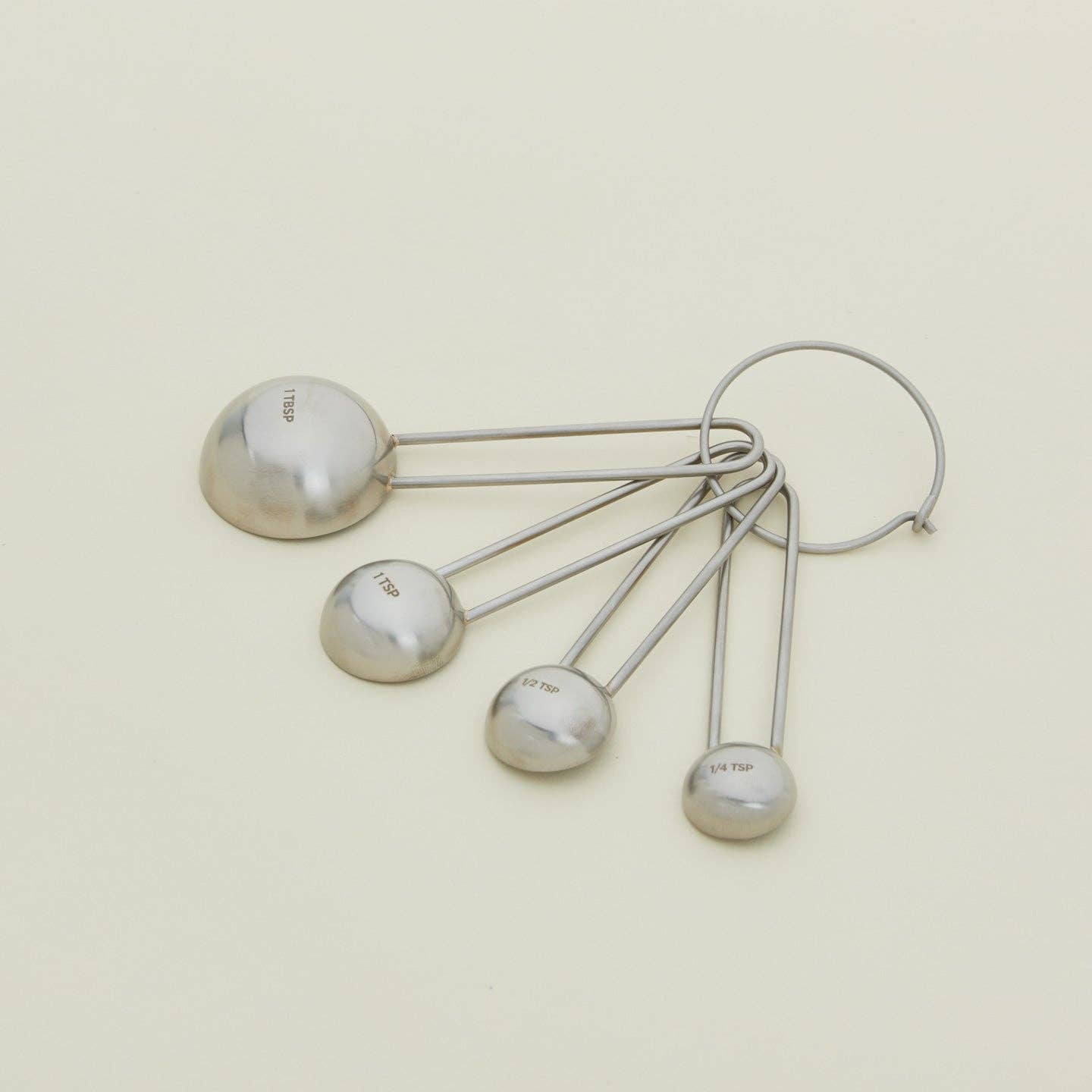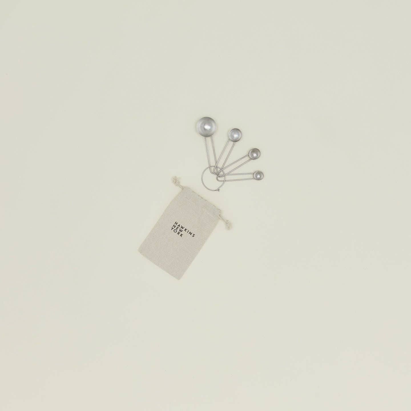 Sleek, shiny, and effortlessly functional, these stainless steel measuring spoons are designed for precision and style in the kitchen. The wide loop handle provides a comfortable grip and makes them easy to hang for quick access. When not in use, keep them neatly stored in their cotton pouch to stay organized.