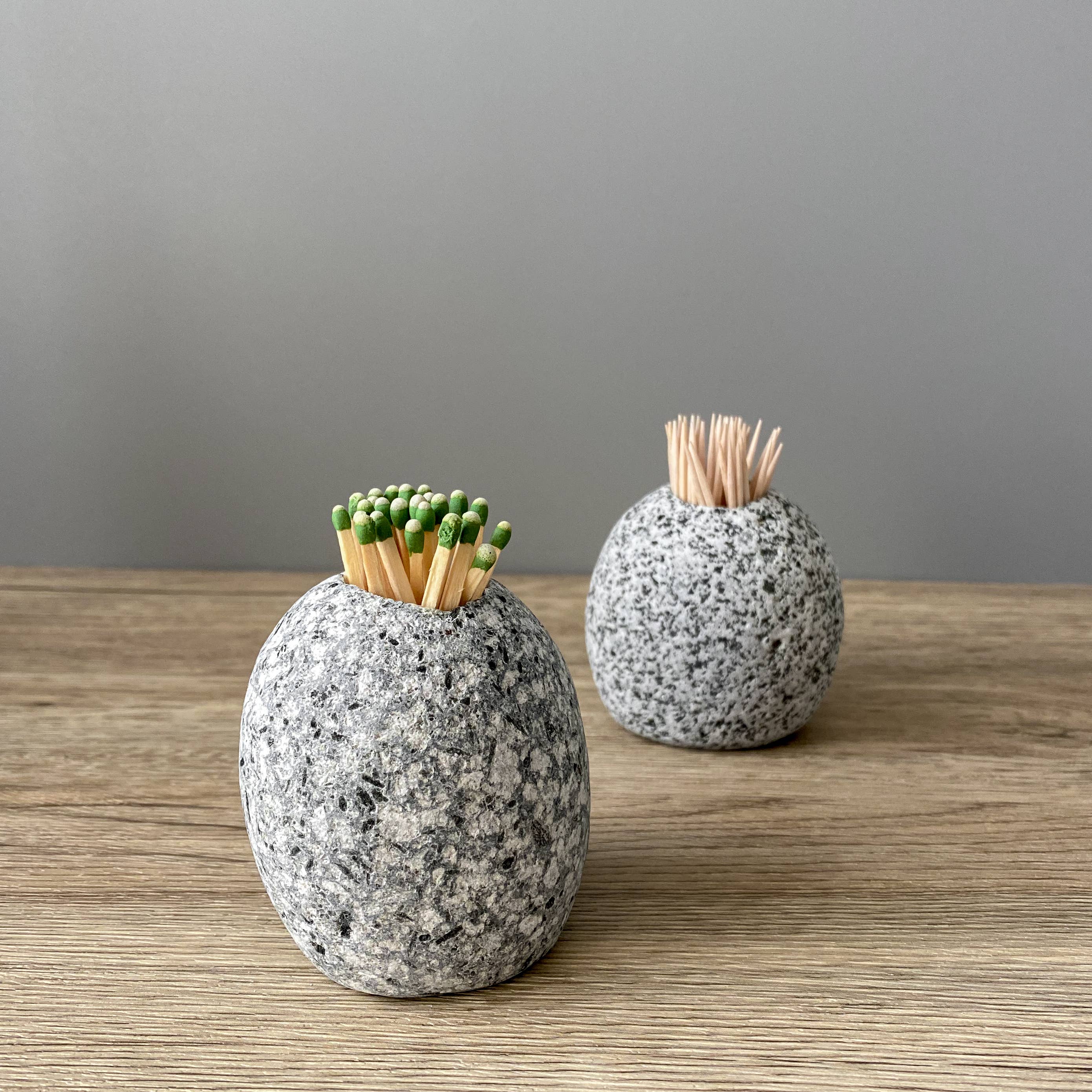 A natural showstopper that’s both functional and fun. This handpicked stone holds your strike-anywhere matches or toothpicks, blending seamlessly into any setting. Use the rough surface to spark a flame or simply enjoy it as a conversation-starting kitchen or tabletop detail.