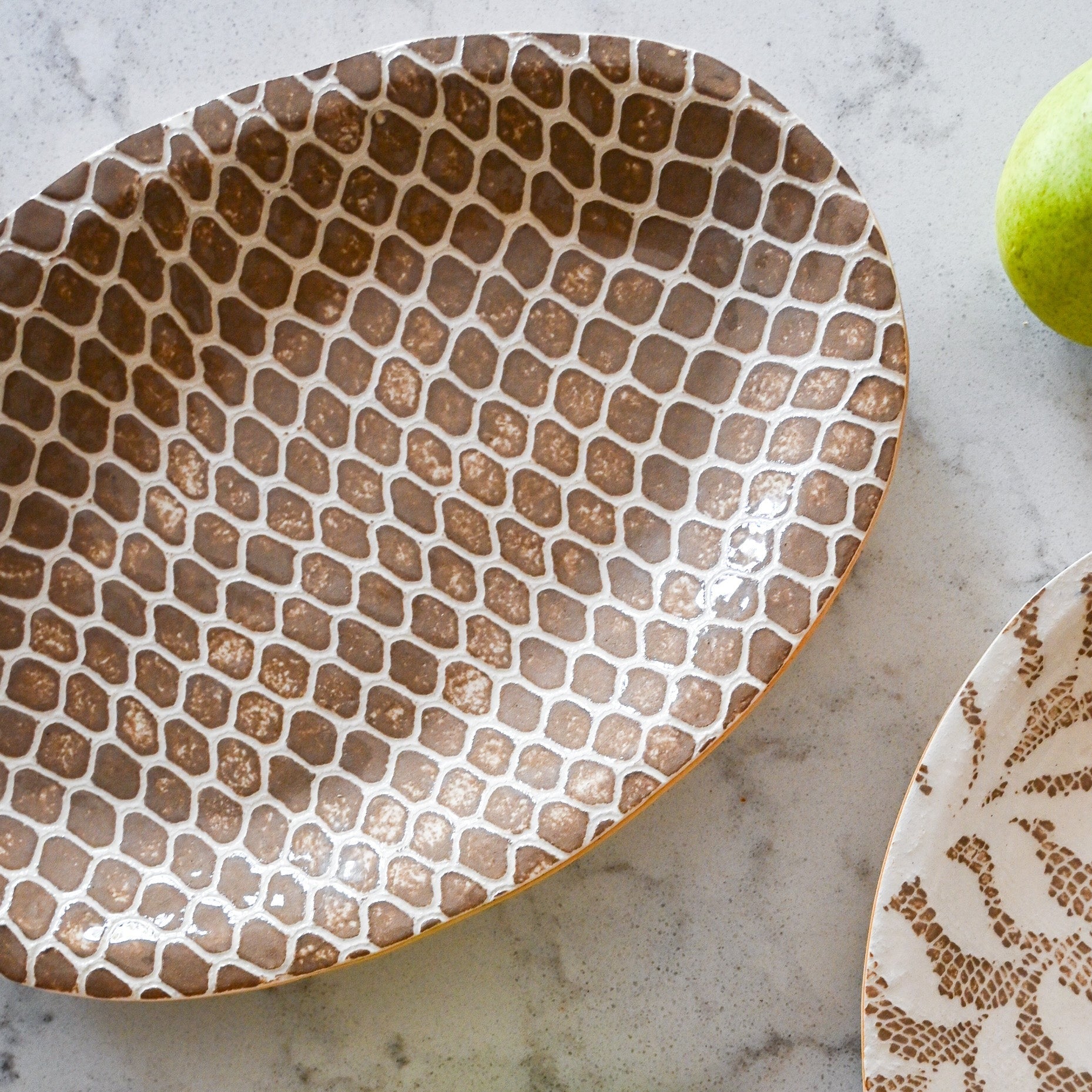 We love these Petite Oval dishes to add a creamy mocha and vanilla base and fern pattern to any table setting or countertop. Serve your favorite salads, side dishes, or small-bites on this Terrafirma Ceramic classic.